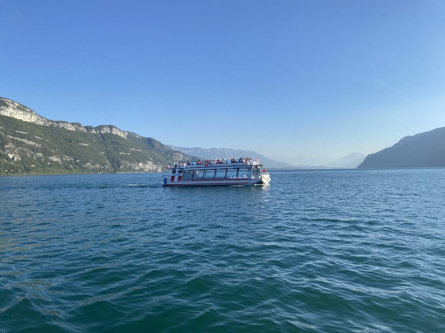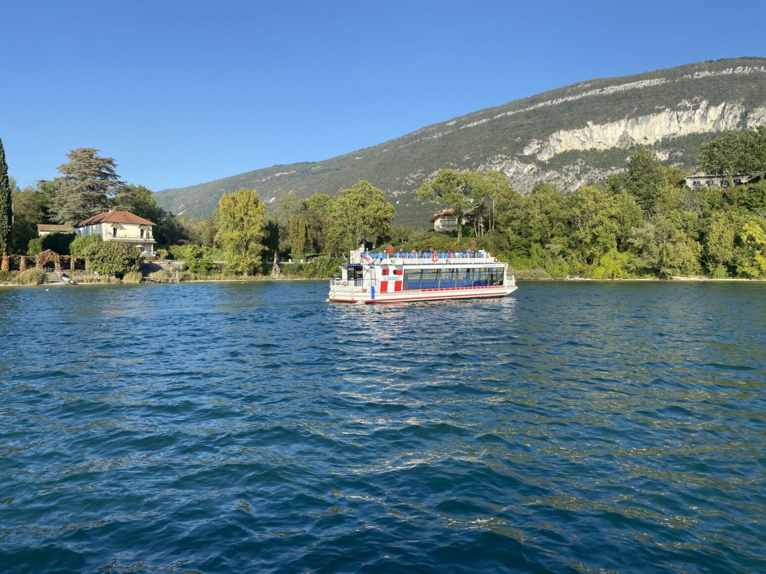 Selon le parcours choisi, le bateau peut rejoindre progressivement le nord du Lac du Bourget.